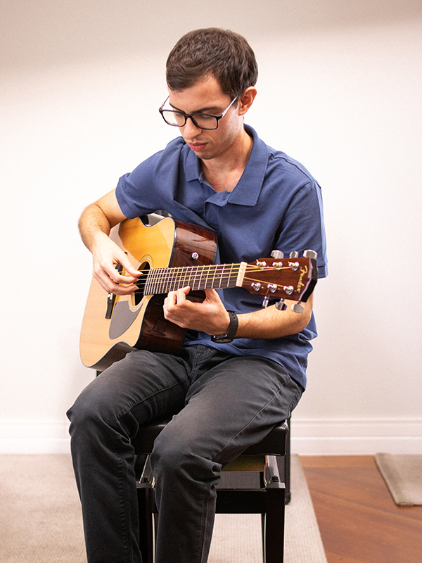 As aulas são compostas de teoria musical e prática para os instrumentos violão erudito ou popular e guitarra.